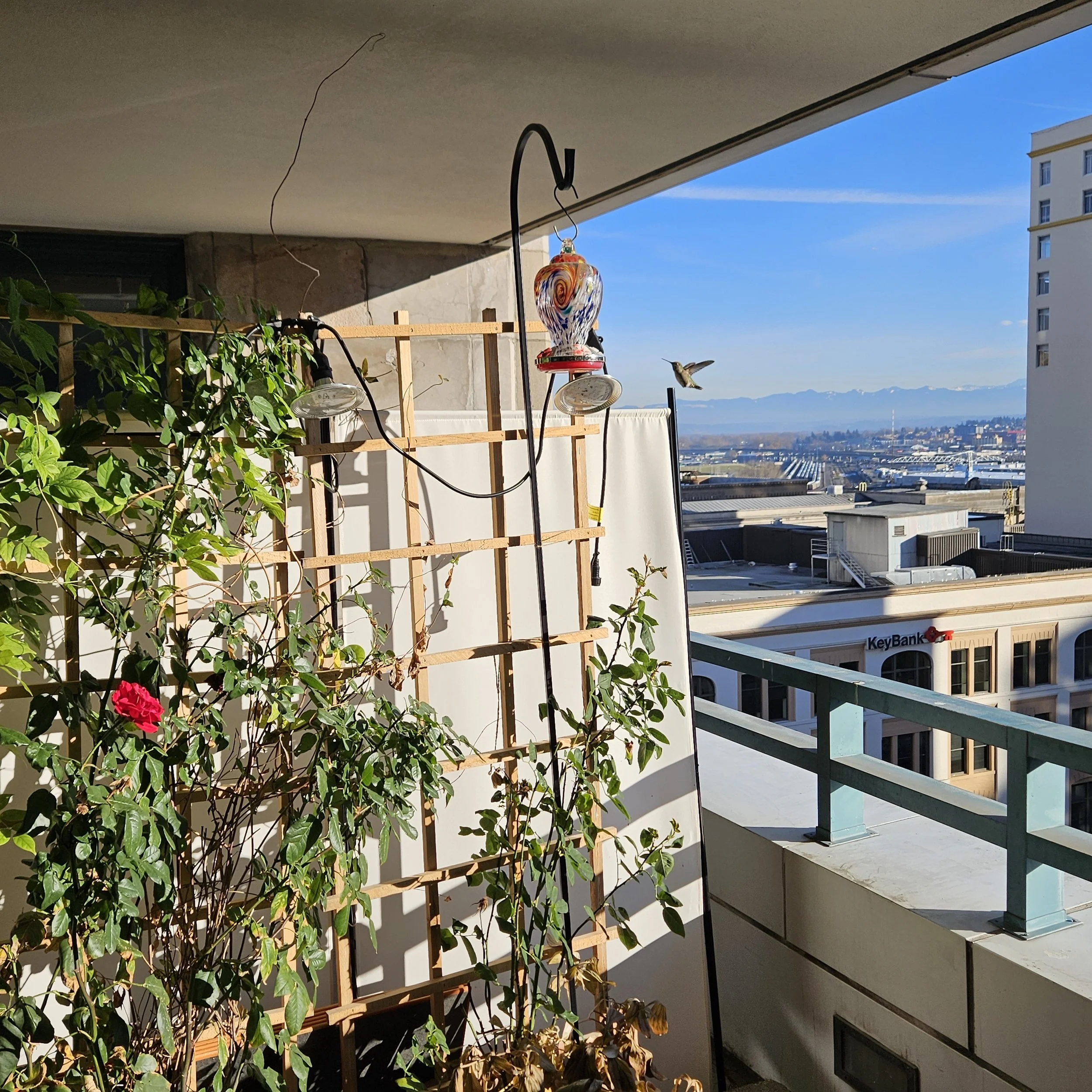 As you get tattooed, enjoy sweeping views of Tacoma from above—complete with occasional visits from local hummingbirds and other birds that frequent our balcony. Our studio features an abundance of natural light through panoramic views of the surrounding area. You’ll be surrounded by thriving greenery in the form of lush plants evoking a peaceful environment.